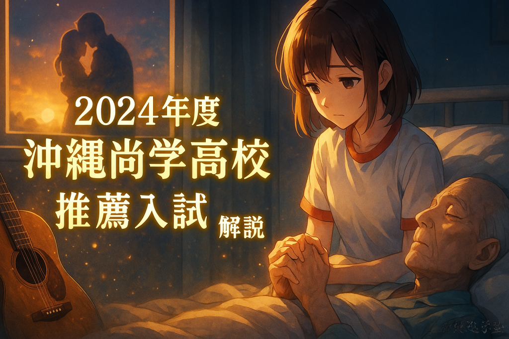 2024年度の沖縄尚学推薦入試英語は、長文読解を中心に、細かな文法理解を要する設問を組み合わせた総合力型の構成だった。長文は人物の心情変化を描いたストーリーで、本文全体の流れを掴む力が必要で、特に「行間を読む力」「心情推論」が合否を分けた。また、設問は事実確認よりも、主人公の“気づき”や患者の“反応”など、文章の深部理解を前提とした選択問題が多く、文脈を論理的に整理する必要が高かった。