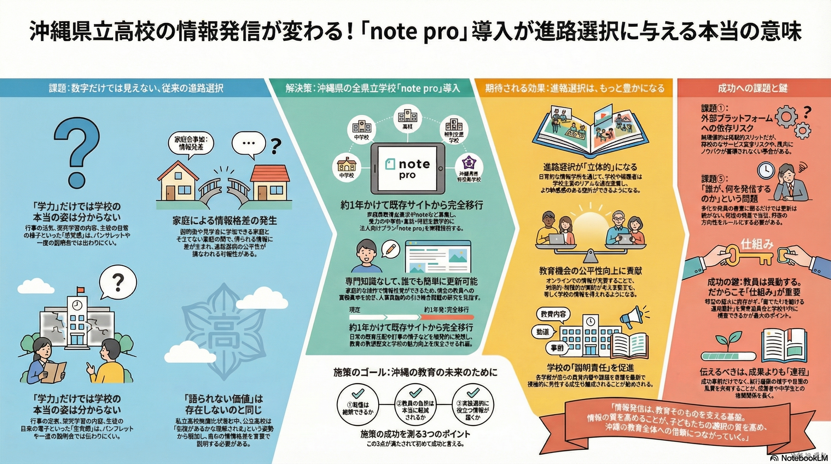 こうした問いを投げかける中で、沖縄県教育委員会が発表した「県立学校公式ホームページへの note pro 採用」は、単なるIT導入以上の意味を持つ出来事だと考えます。
