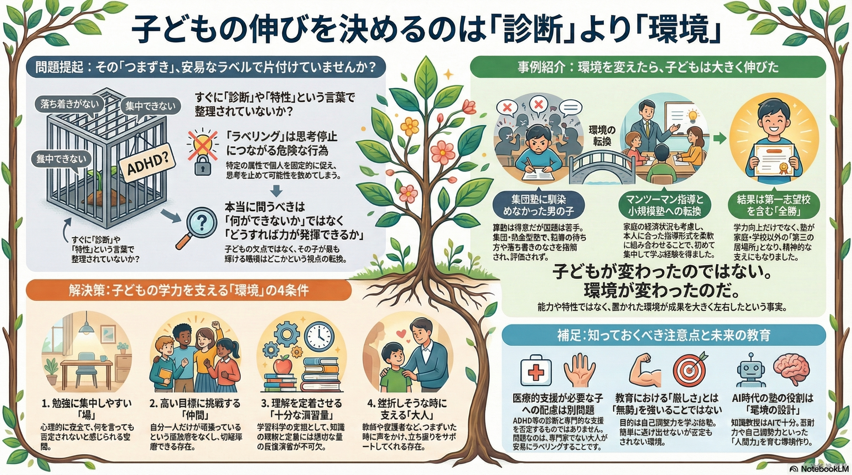 本来問うべきなのは、「この子は何ができないのか」ではなく、「この子が力を発揮できる環境はどこにあるのか」ではないでしょうか。