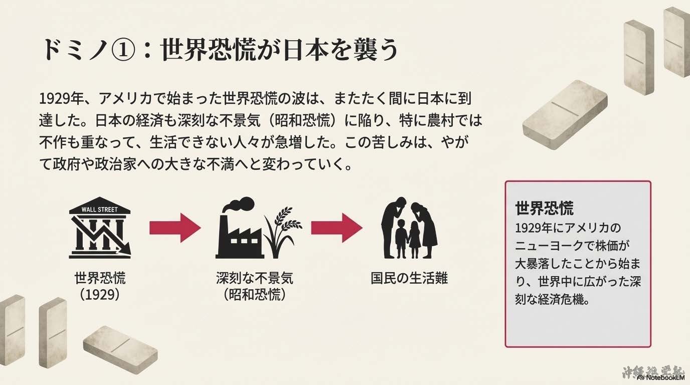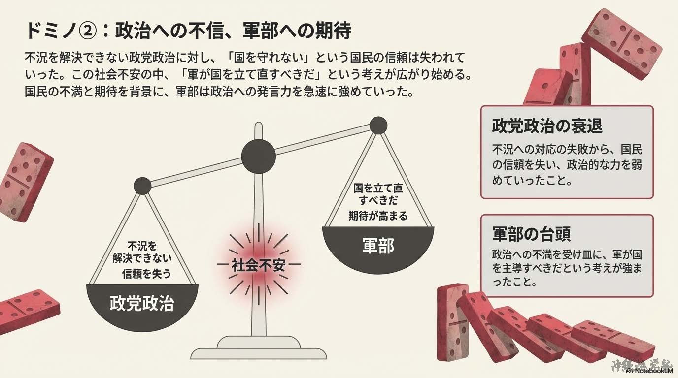 <不況と軍部の台頭>