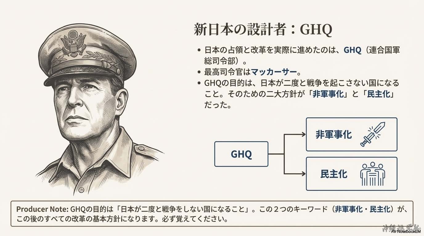 •GHQ(ジーエイチキュー):連合国軍総司令部