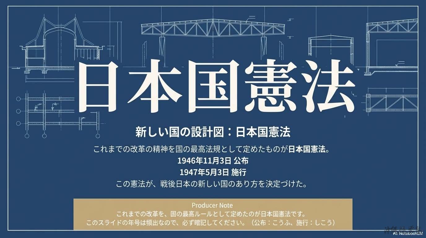 •日本国憲法 → 1946年公布・1947年施行