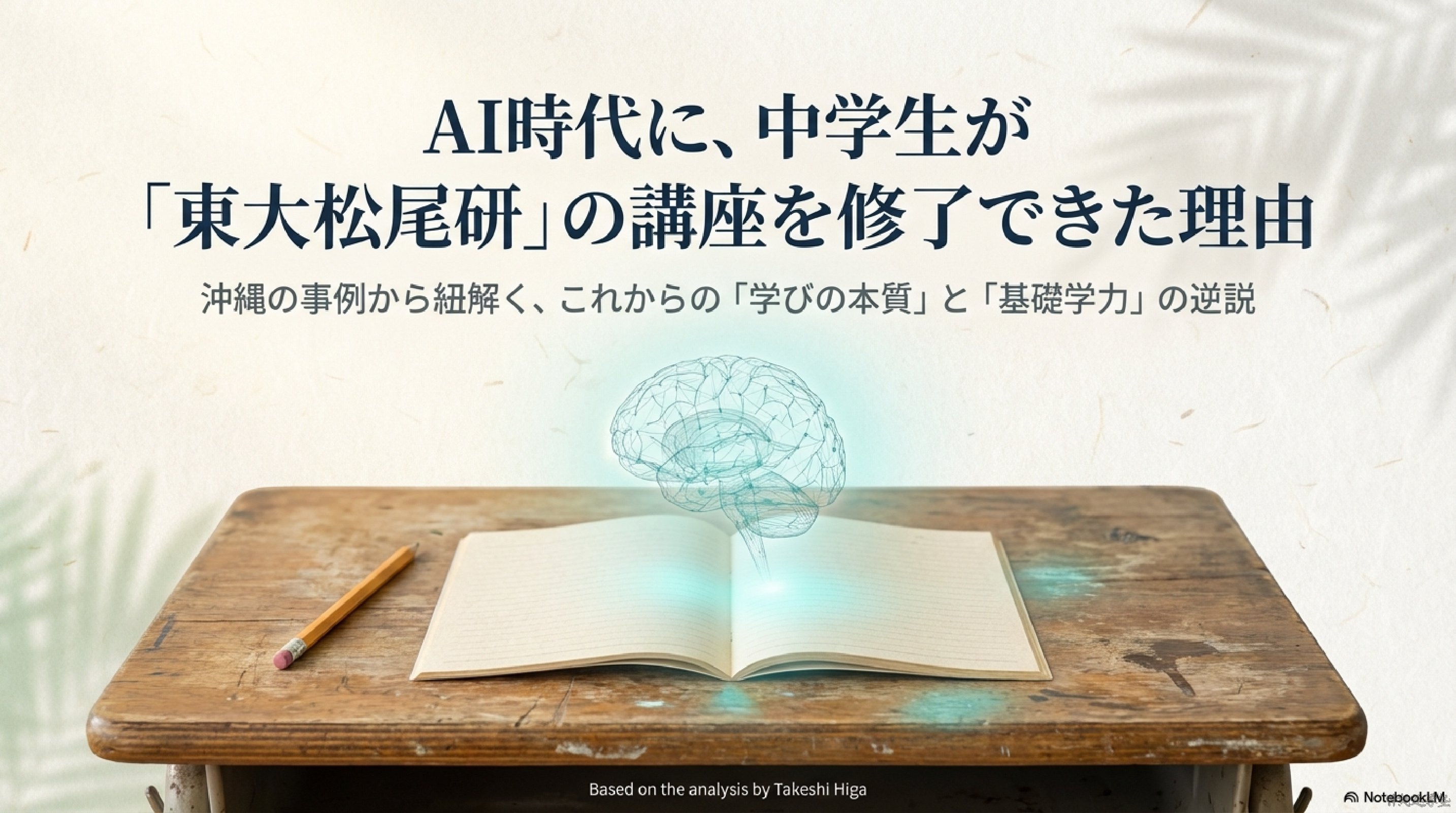 2026年1月、沖縄から明るいニュースが届きました。東京大学のAI入門講座を修了した沖縄の中学生が紹介されたのです。この出来事は「すごいね」で終わらせるにはもったいない、今の時代の学び方を考える大切なヒントを含んでいます。