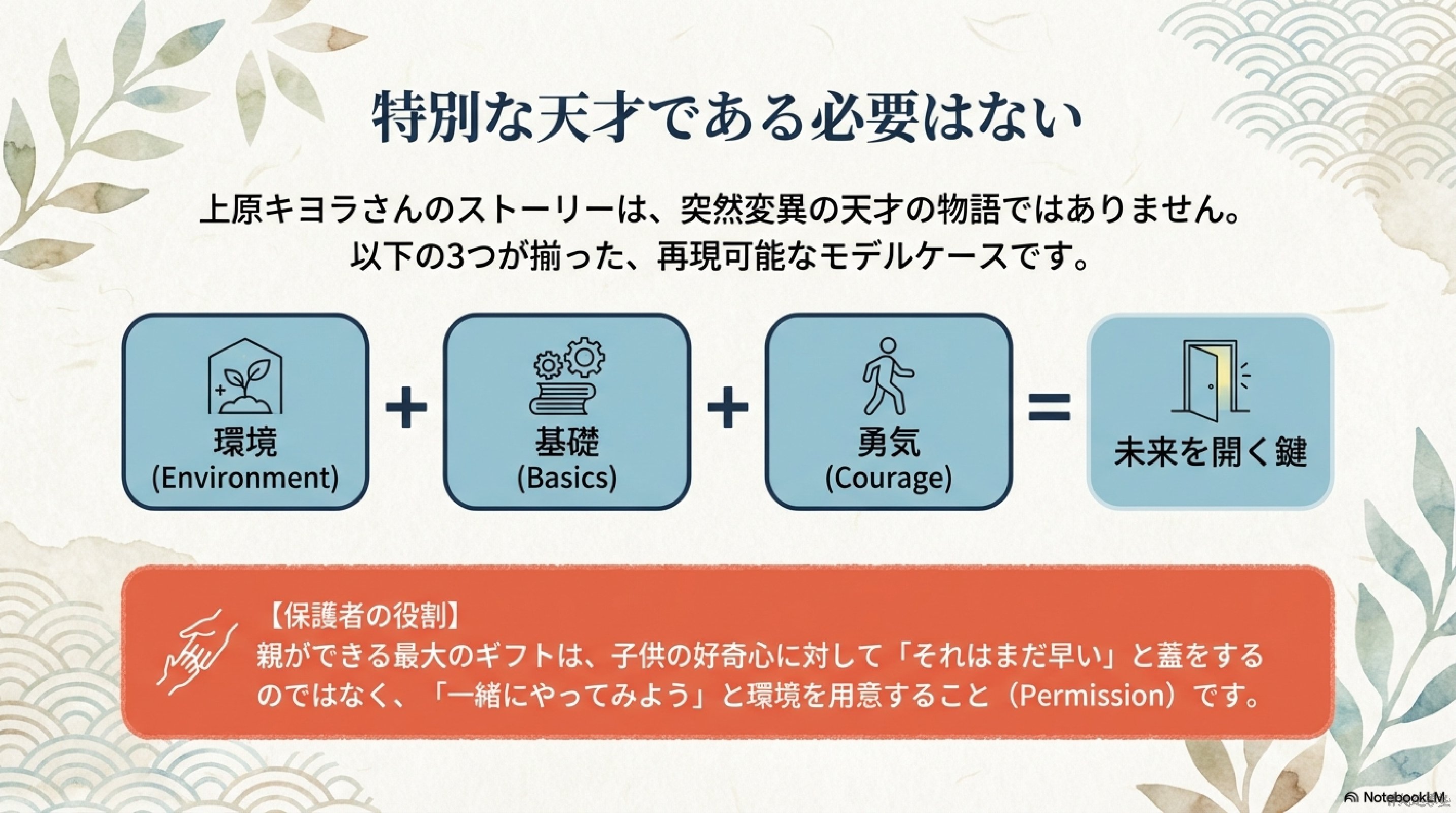 上原キヨラさんの挑戦は、特別な天才の物語というより、環境を活かし、基礎を大切にし、一歩踏み出した結果です。この視点こそ、中学生と保護者の皆さんに持ってほしいと思います。