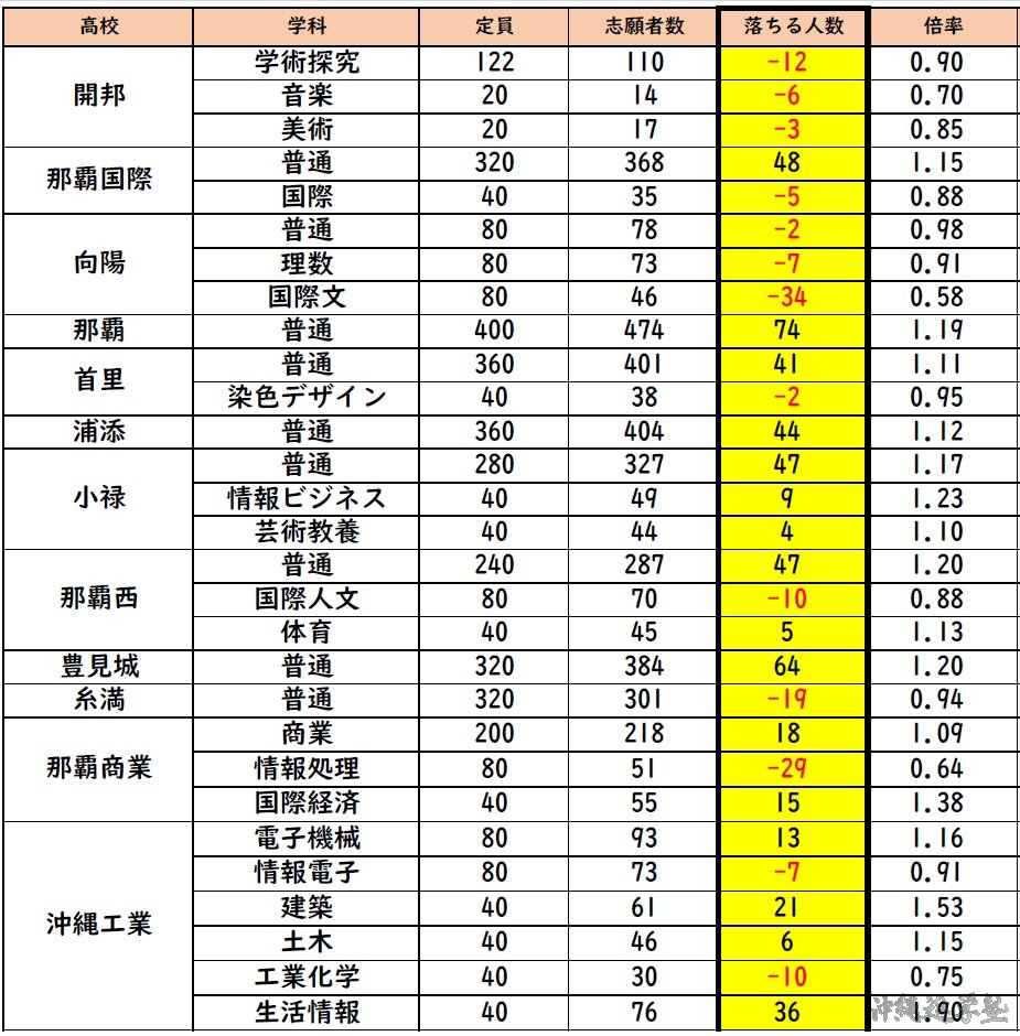 沖縄県教育庁は、2月3日(火)夜、県立高校および県立特別支援学校高等部における2026年度入試(一般選抜・特色選抜)の「初回志願状況」を発表します。この初回志願状況は、各校・各学科にどれほどの受験生が集まっているのかを示す重要なデータであり、今年度の入試動向を読み解く最初の指標となります。志願倍率の高低は、そのまま競争の激しさを表すだけでなく、受験生や保護者が今後の出願戦略を考えるうえで欠かせない材料です。本ページでは、教育庁の発表と同時に、各校の志願倍率を一覧表にまとめ、できるだけ早く速報としてお届けします。全体の傾向を俯瞰しながら、自分の志望校や併願校の状況を冷静に確認するための参考資料として、ぜひご活用ください。