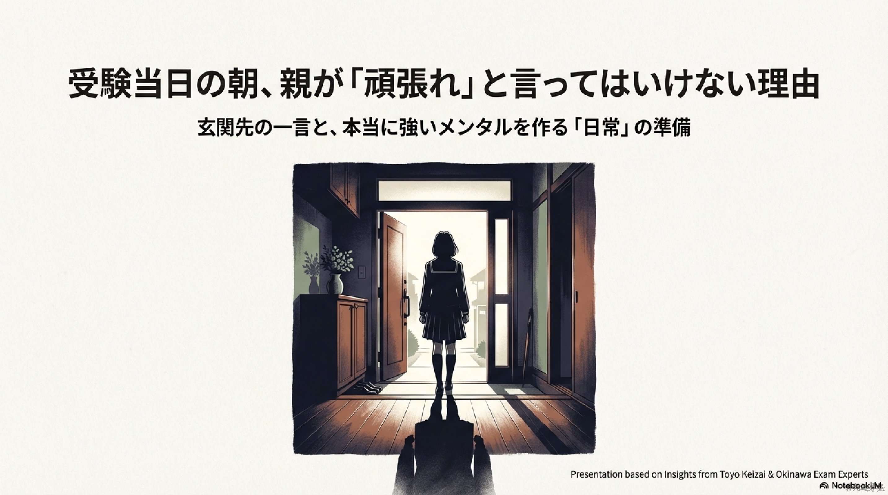 受験当日に親がかける言葉に正解はありませんが、「頑張れ」よりも、これまでの努力をねぎらう言葉が子どもの心を安定させることが多いとされています。本記事では参考記事を踏まえつつ、沖縄の受験現場の視点から、受験当日の安心は一言で作られるのではなく、併願校の準備や「落ちた場合」の話し合い、当日の動きのイメージトレーニングなど、受験日までの日常の積み重ねで生まれると論じます。結果ではなく過程を認め、「いつも通り」に戻す親の関わりが、受験生の力を引き出す鍵であることを伝えます。