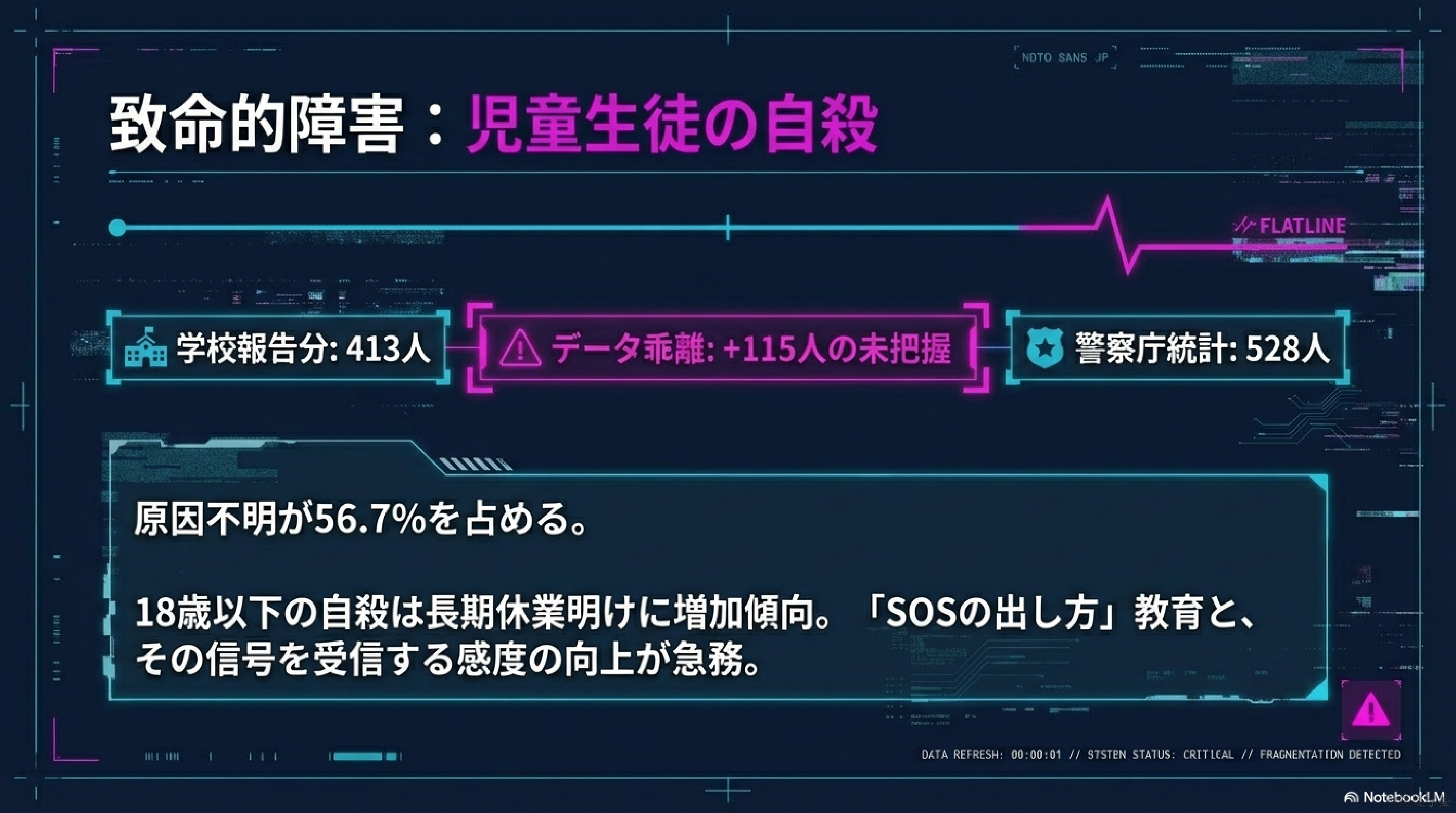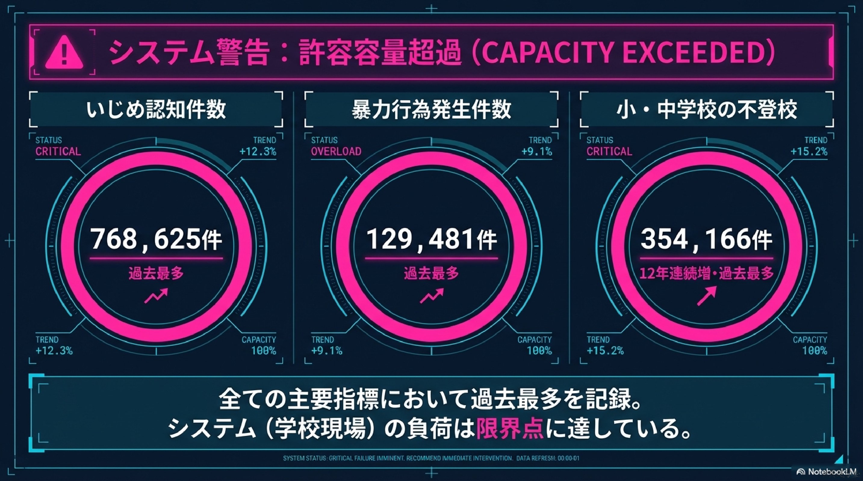 | 児童生徒自殺数 | 413人 | 過去最多 |