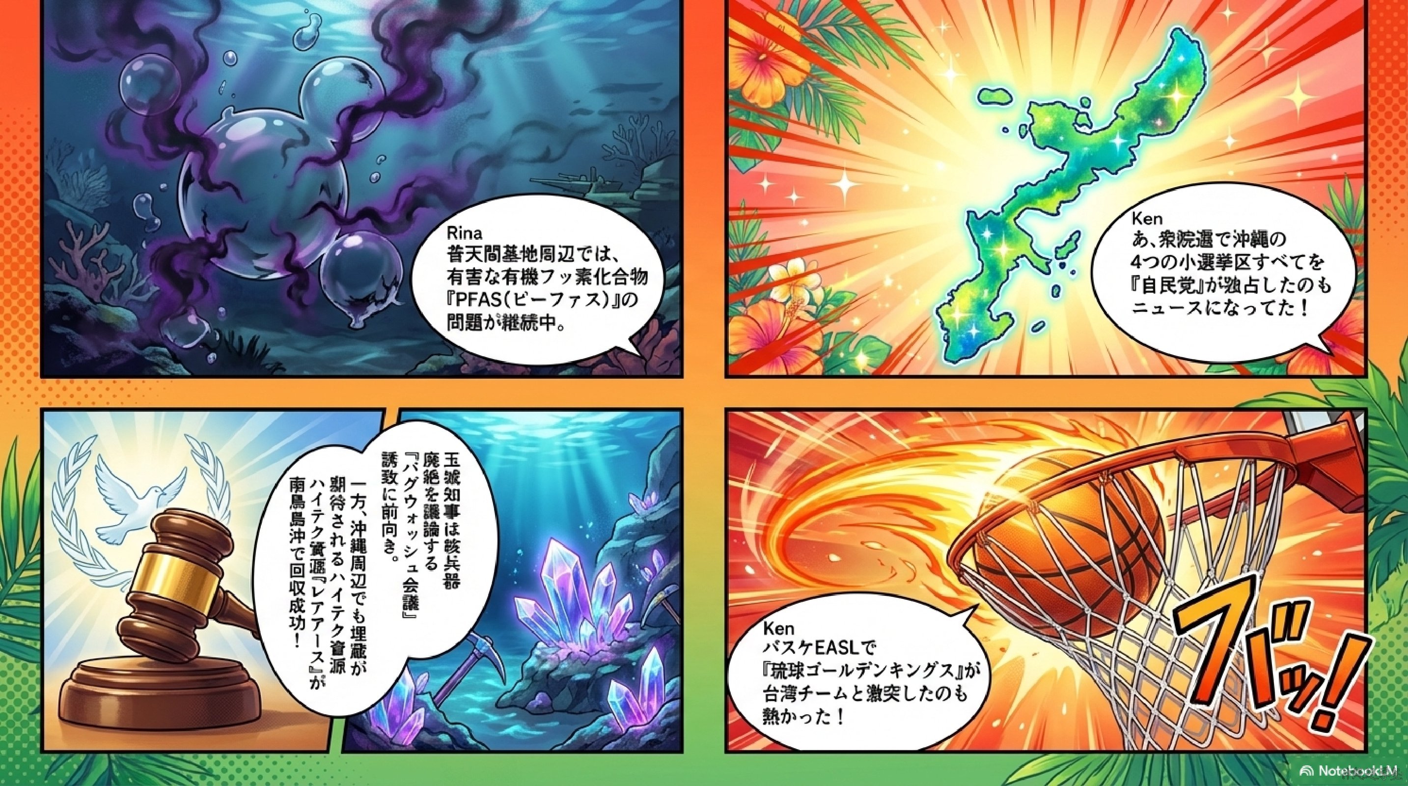 PFASとは、有機フッ素化合物という化学物質の総称です。特徴は「水や油をはじく」「分解されにくい」という性質があります。そのため防水製品、消火剤などに使われてきました。しかし、健康への影響が心配され、また自然に残り続けるため、世界的に問題になっています。沖縄では米軍基地周辺の水質問題として注目されています。