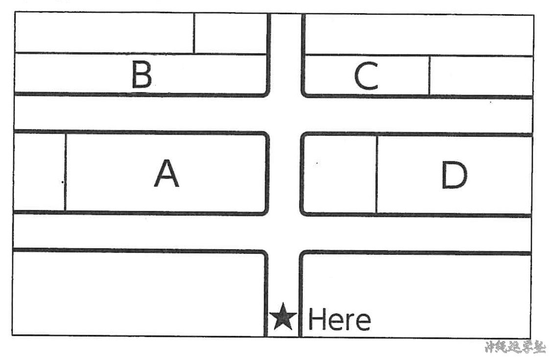 | between A and B | AとBの間 | Music Room と Library の間が正解 |